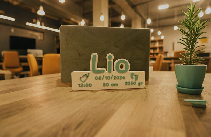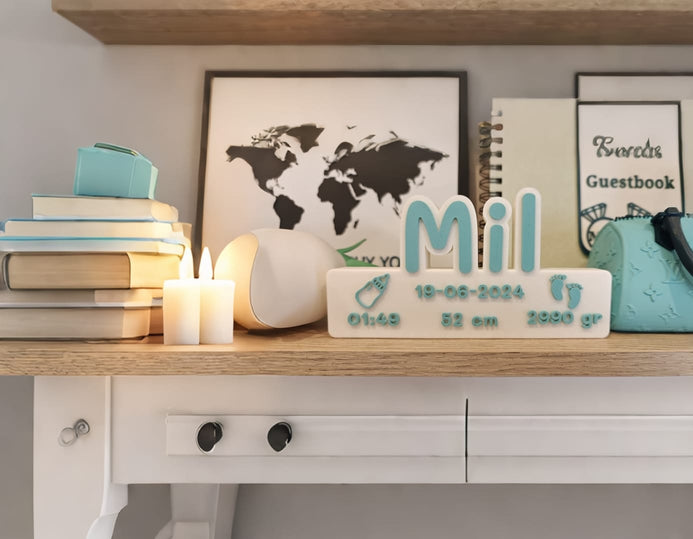 Vier de geboorte van een kindje met dit unieke 3D-geprinte geboortebord. Elk stuk wordt op maat gemaakt met de naam van het kind, geboortedatum, tijdstip, lengte en gewicht met zorg en liefde geprint in jouw favoriete kleurencombinatie.